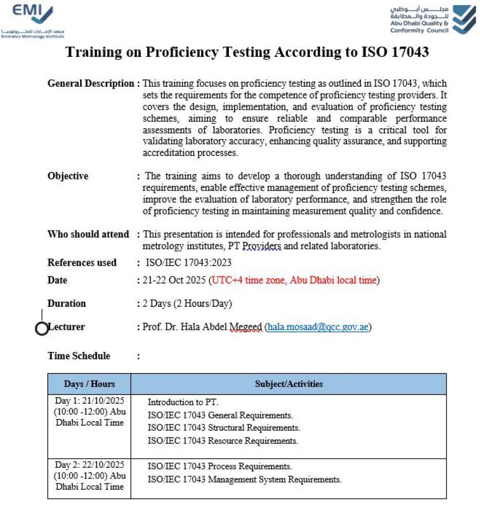 Training on Proficiency Testing According to ISO 17043